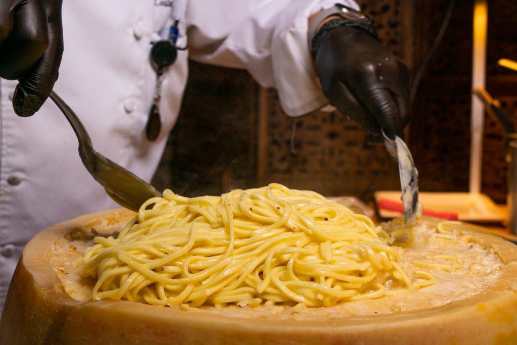 Indulge in classic Cacio e Pepe or NEW gourmet flavors made fresh in a Parmigiano Reggiano cheese wheel.